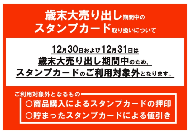 【歳末大売り出し期間中のスタンプカード取り扱いについて】
