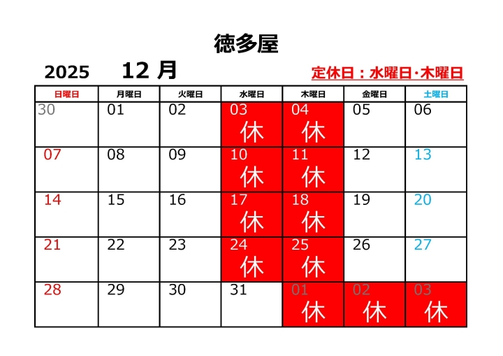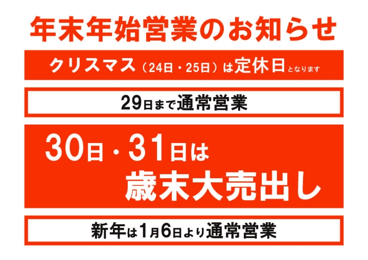 12/30、31は歳末大売り出し。両日ともに10時オープン。